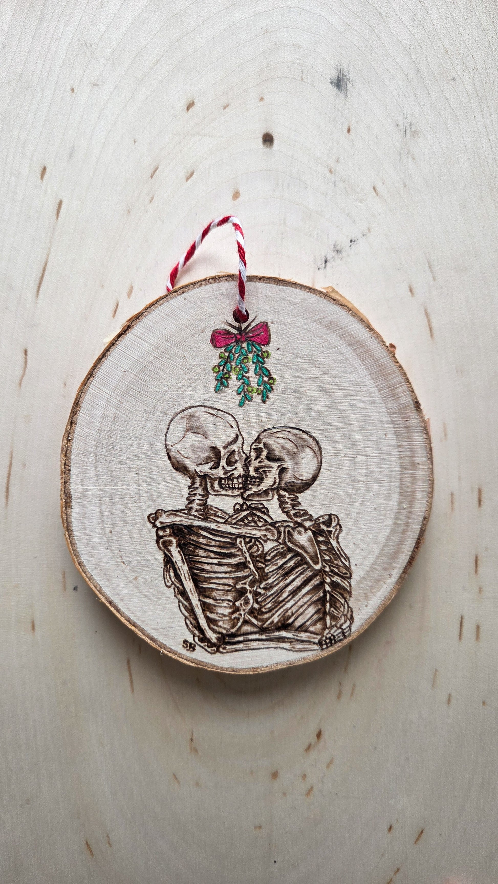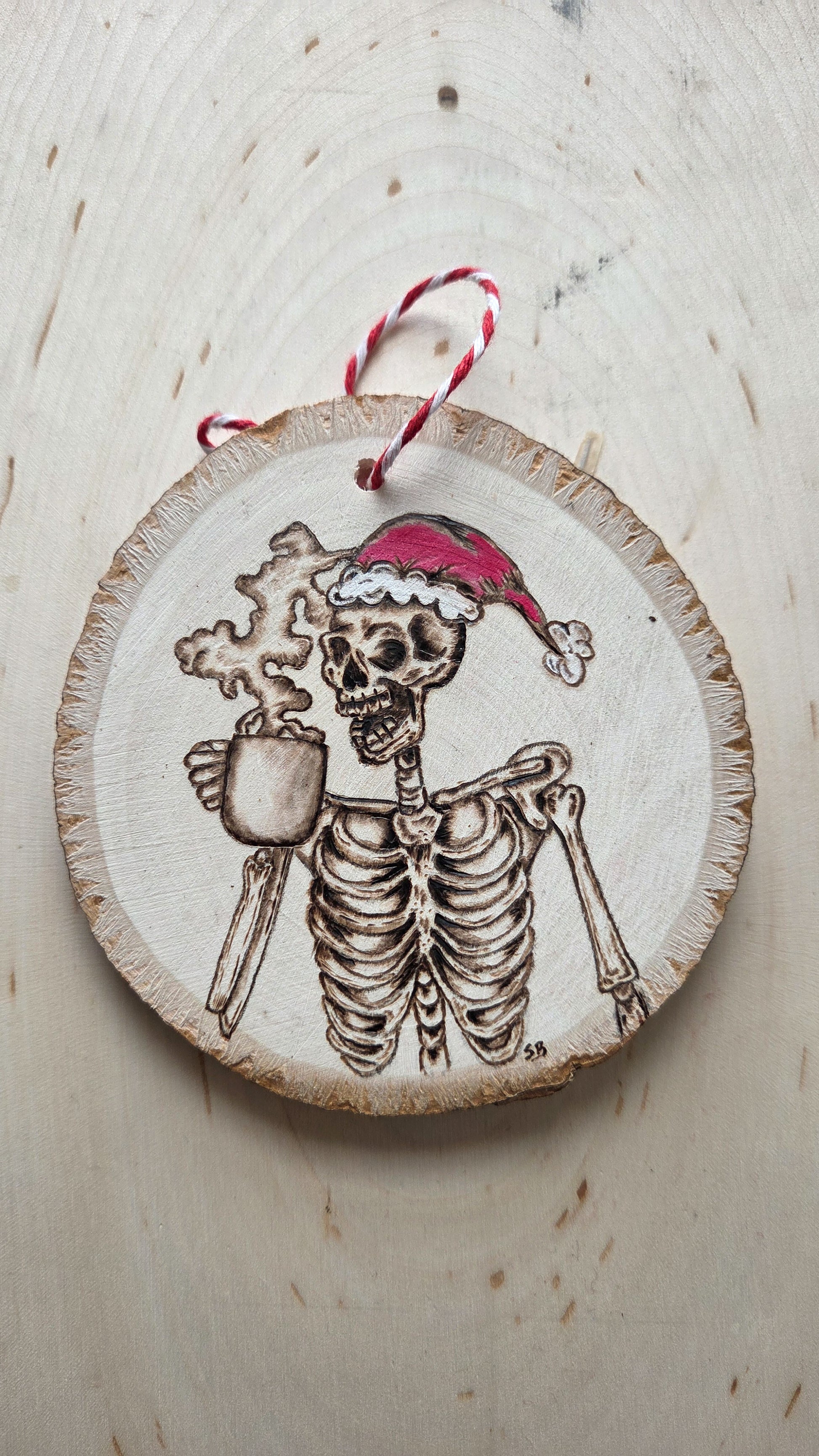 Choose which skeleton design you want to celebrate this holiday season with. After you purchase Stephanie will be in touch with you about customization. You will be able to choose between Birchwood or Basswood. Add a message, date, or names to the back of your ornament and more!